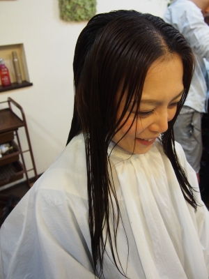 オーガニックアロマオイルをトリートメントに混ぜて 頭皮と髪に塗布し 潤いを与えながらマッサージする