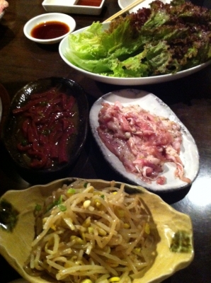 白もやしのナムル サンチュなどを頼みつつ