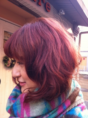 赤みの強いレッドで染めてます☆