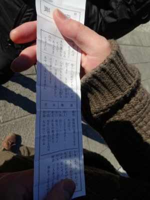 おみくじを引く2人