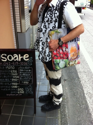 今日の朝 出勤したら メンズ2人の服がハイファッションで びっくり