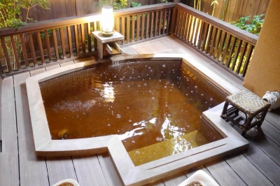 露天風呂がかなり良い感じで すぐに露天風呂でみんなで足湯しました