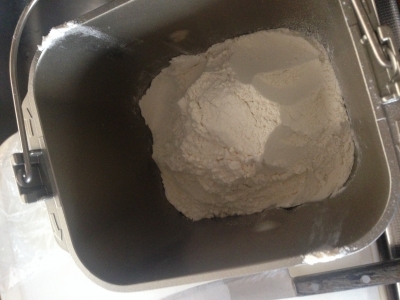 今回は 材料を入れて パン焼き器に捏ねてもらいました