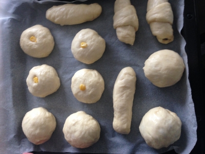 その後 カレー クリーム ソーセージ ツナコーン などなど包み 二次発酵40分