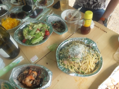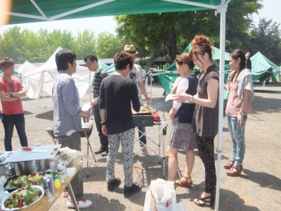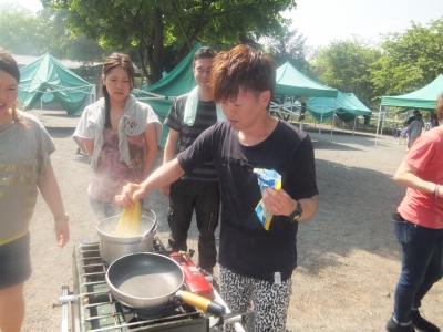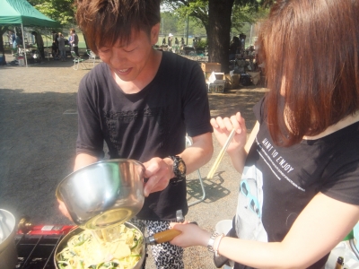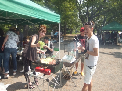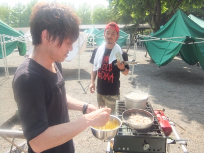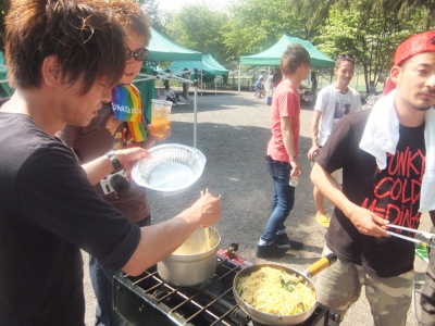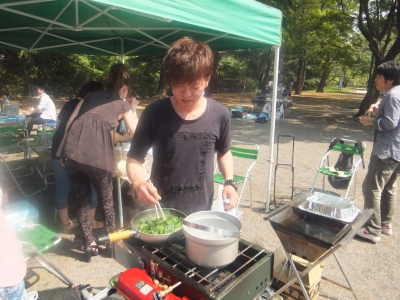 みんなで外で料理して お酒飲んで 食べて・・・