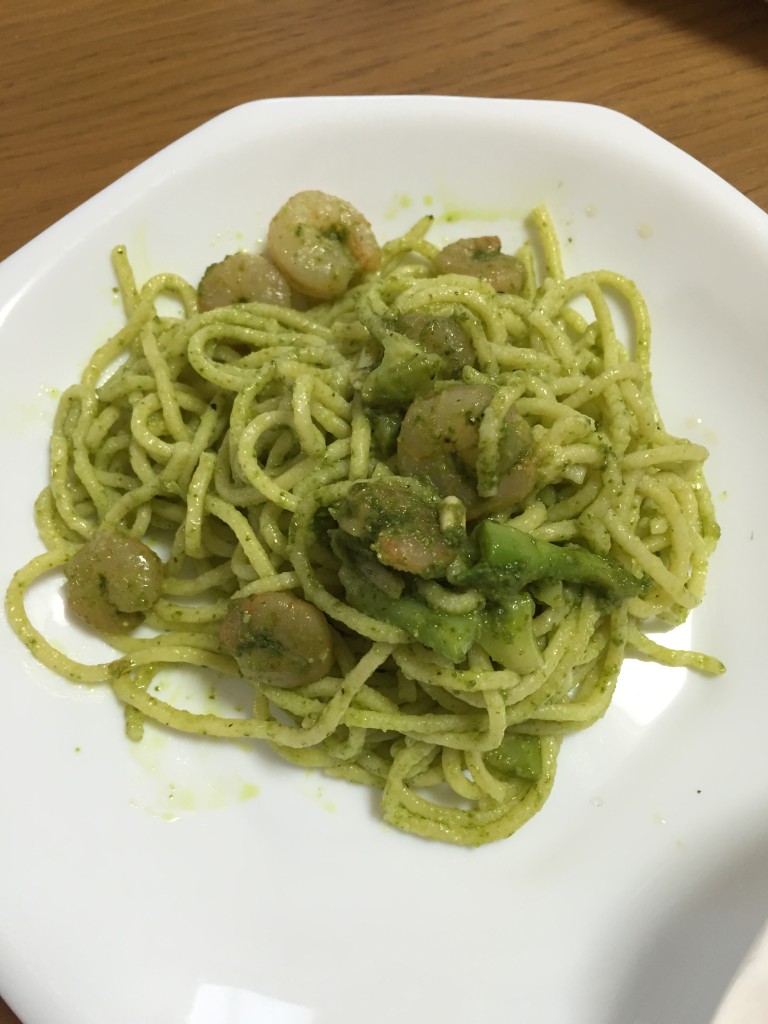 バジルと松の実、オリーブオイル、ニンニクでジェノベーゼのソースを作ったり してました![]()