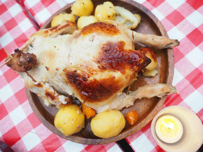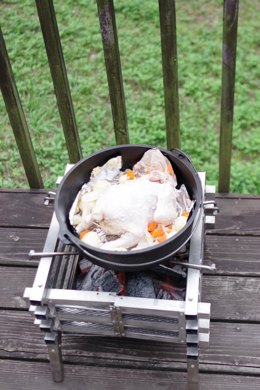メインの丸鶏がダッチオーブンに入ります![]()