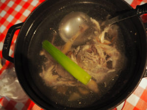 丸鶏の骨で出汁を取り次の日のスープにしました![]()