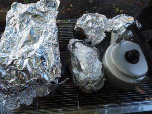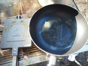 着火剤と保温器用に持って行った固形燃料で頑張ってました![]()