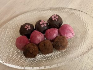 コーティングは ダークチョコレートと ホワイトチョコレートにビーツパウダーを混ぜてピンクにしたチョコの2種類に![]()
