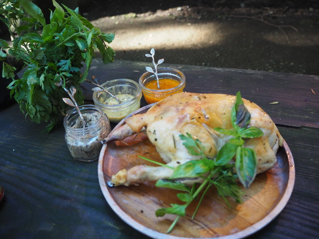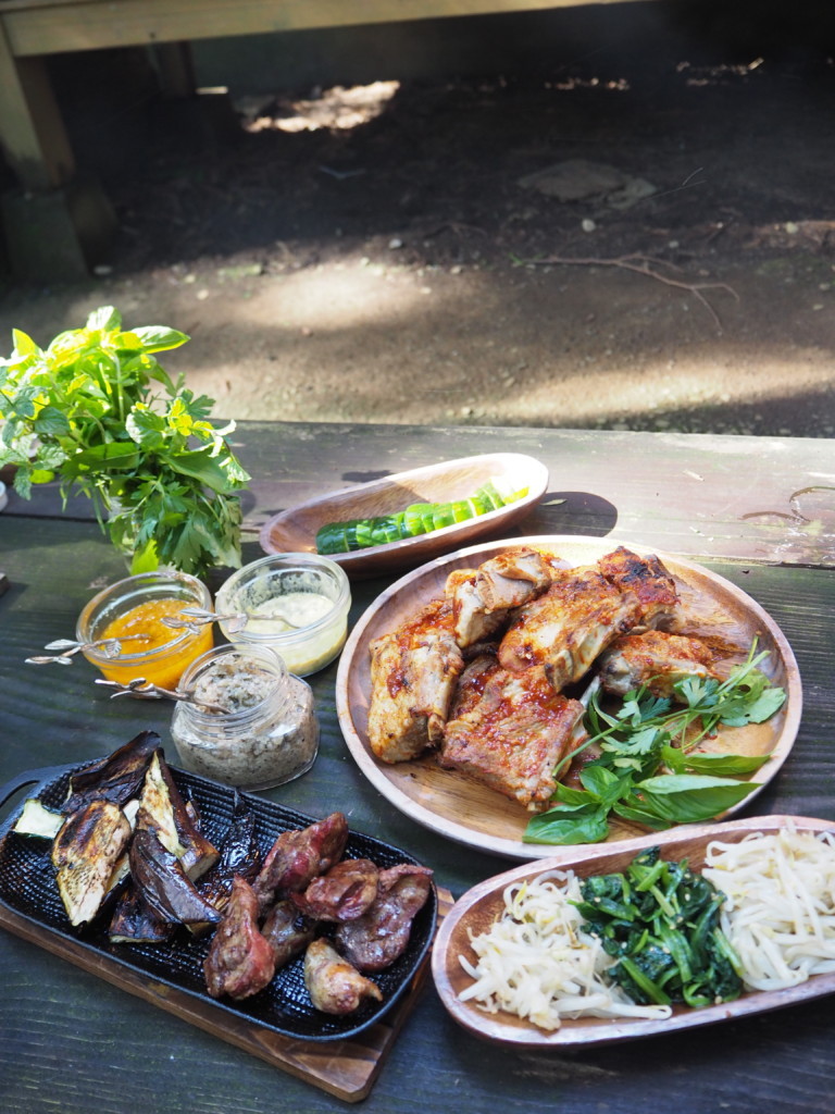 自家製のローズマリー オレガノ タイムを刻んで 岩塩とブラックペッパーでマリネして持っていきました![]()