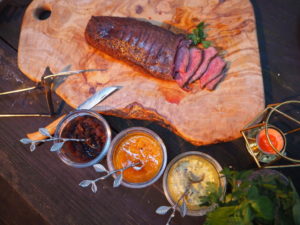 玉ねぎをバターで炒めて バルサミコ酢と赤ワインで作ったソースで![]()