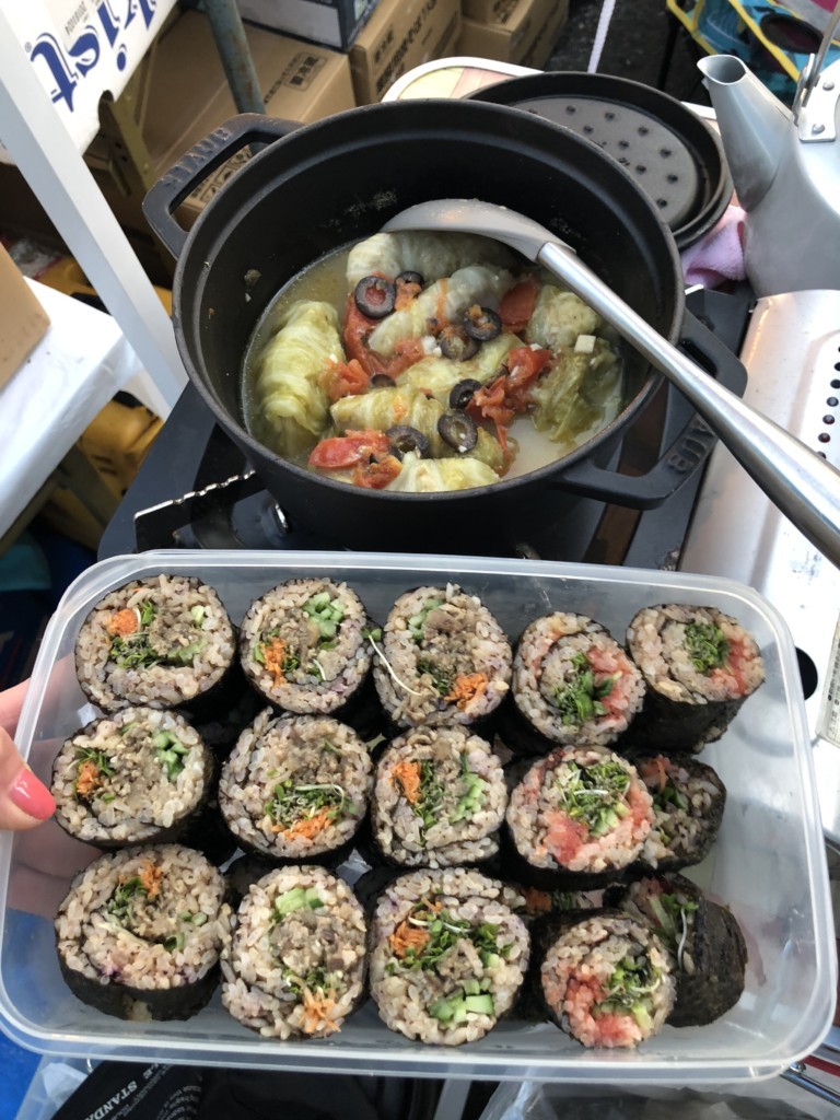 この日の まかない用に 海苔巻きとロールキャベツを作っていきました![]()