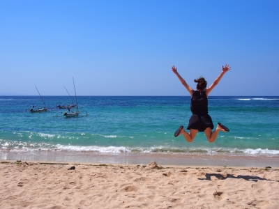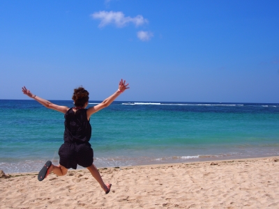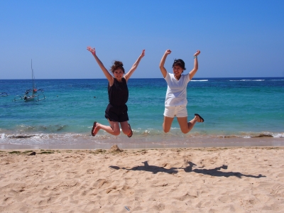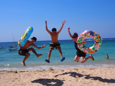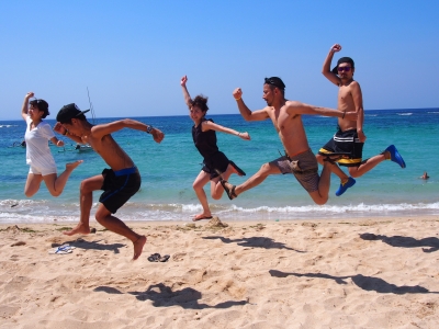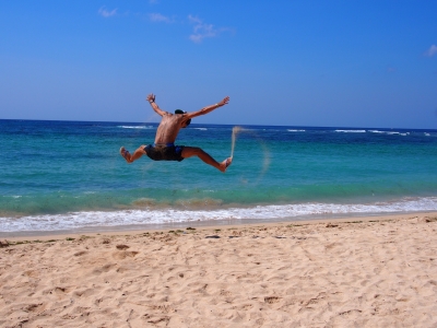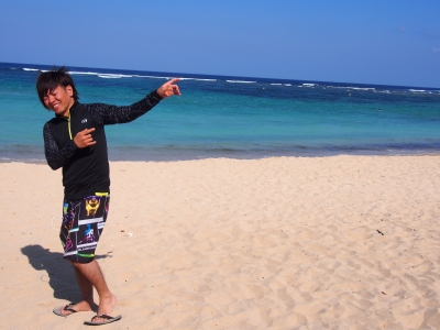 お手本を見せてもらったり 走りにくいビーチで みんなで助走をつけて何回もジャンプしていたので