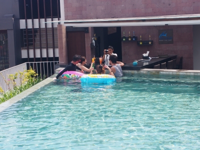 前日 3時くらいまで飲んでいたので 9時くらいに朝食を食べ そのままプールへ