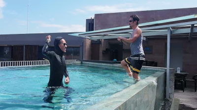実は 前日のヌサドゥアビーチに全身タイツで行こう ということになっていたのですが