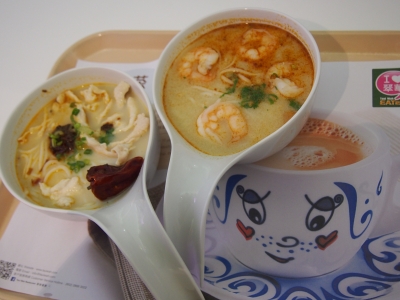 エビの麺と四川風の辛い麺を4人でシェアして食べました