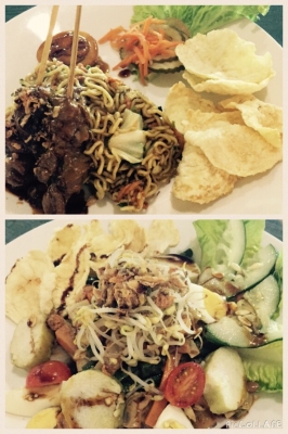 ミーゴレンとカドカドサラダ カドカドサラダは 茹でた野菜とテンペのサラダなのですが