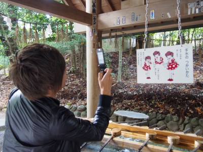 手水のつかいかた の絵が好みだったらしく 写メを撮る比嘉さん