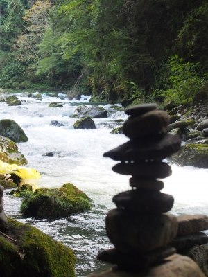 歩いて10分のところに天安河原があり 石を積みながら祈ると願いが叶うという信仰・習慣があるそうで