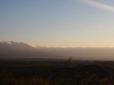 大観峰に着いてみたら 雲が別の山にかかっていて 雲海は見れなかったのですが