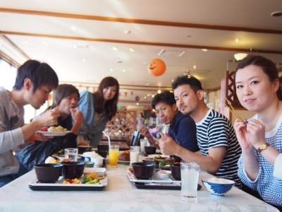 温泉に入ったりして みんなで朝食