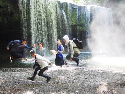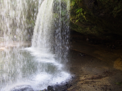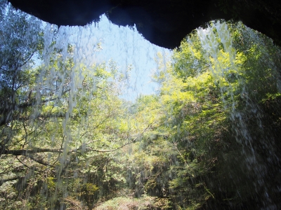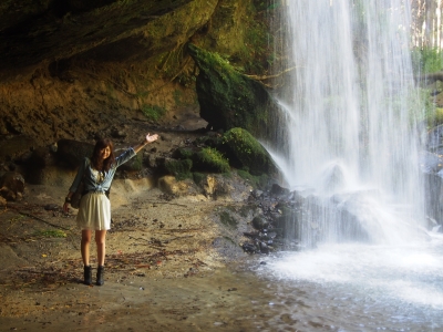 ここは おーいお茶や生茶のCMのロケ地になった滝で 滝の裏側に入ることができるんです