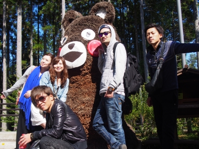また森の中の道を戻り 滝の入口にいた 偽物のくまモンと