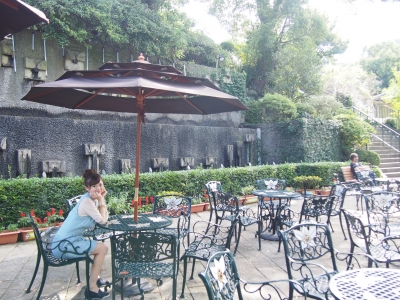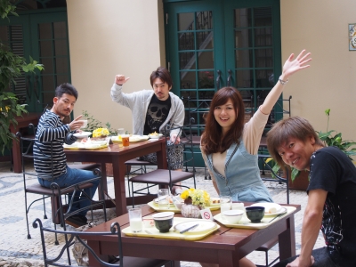 中庭のテラス席で 朝ごはん ビュッフェスタイルでした
