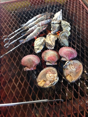かきの他にも ヒオウギ貝や大アサリ エビやカニなどいろいろあって