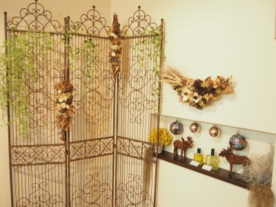 アンティークパーテーションとドライフラワー トナカイとお気に入りオーナメントでおしゃれ空間に