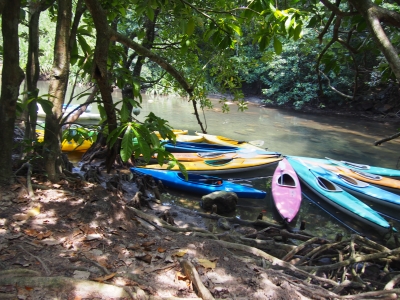 さっきカヌーを漕いでた川の水は 塩分があり 魚も海の魚がいるそうで