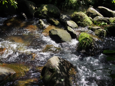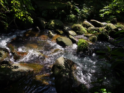 苔が生えてる岩から上が淡水 下は海水なので 苔が生えないそうです