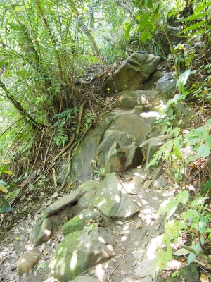 滝付近まで行ったら カヌーを降りて ここからは山登り