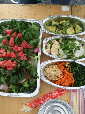 女性陣は アボカドを切ったり サラダの用意&テーブルセッティング