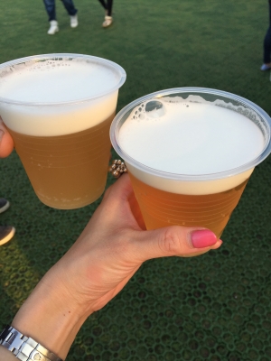1回気になるお店をぐるりとまわって とりあえず 世界のビールブースでビールを購入