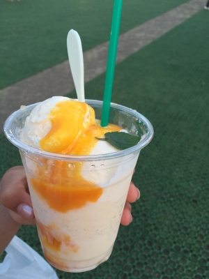 ピンピンホァというお店の マンゴーかき氷かマンゴーソフトクリームが