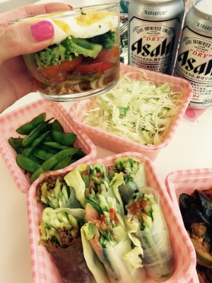 プールに持って行ったのは またまたジャーサラダ風にサラダを作り 枝豆 生春巻き ラタトゥイユ