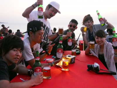 インドネシアのビンタンビールを注文して乾杯