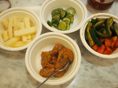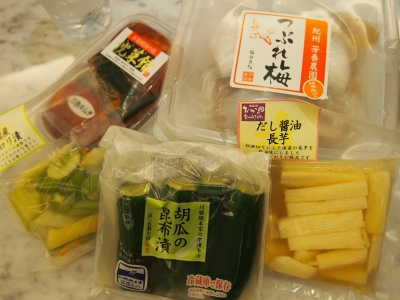 おつまみ用に 漬物・梅干し・キムチ・梨も持って行きました