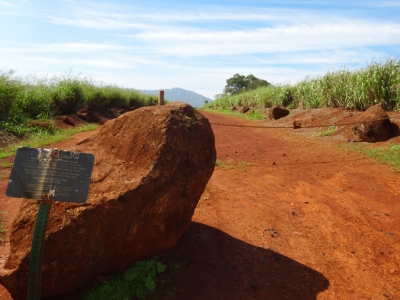 道の途中にあり 駐車場もなく 赤土で オアフ島の他の場所とは全く違う雰囲気でした