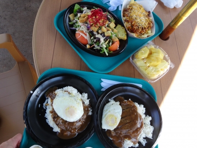 サラダ チリチーズポテト ロコモコ パイナップルをみんなでシェア