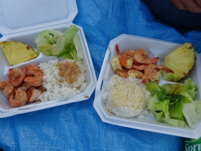 ここでもシート敷いて さっきテイクアウトした ガーリックシュリンプを広げて ピクニック状態
