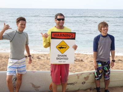 ダッシュでみんなに知らせに行ったら せっかくサーフボードを借りたのに サメが出たようで・・・