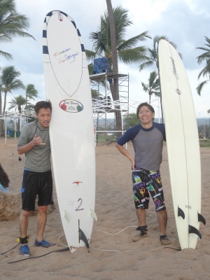 それでも 地元の女の子がサーフィンしていたので ひがちんと井出も海へ