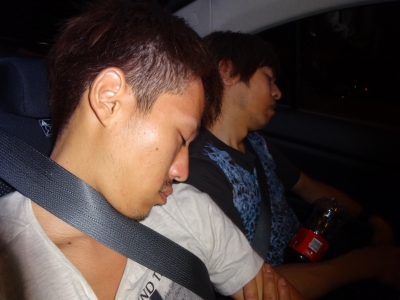 運転は安田さんで 私がナビ サーファー2人は まさかの爆睡
