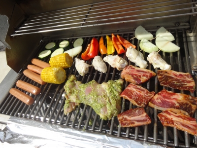 奥さんが バジルソースで下味をつけておいてくれた鶏もも肉も スペアリブも美味しかったです