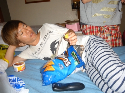 最後の日もこのお方は この体制で チップス食べてました