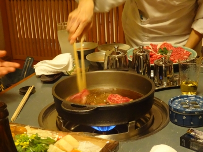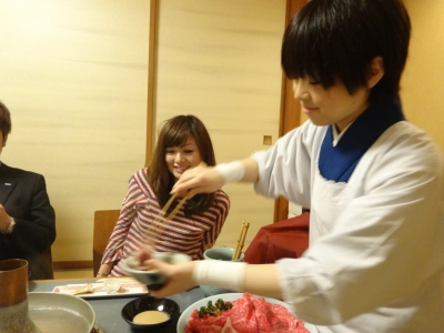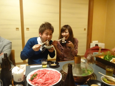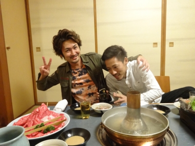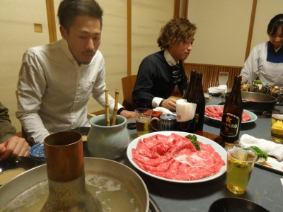 しゃぶしゃぶチームとすき焼きチームに分かれてお食事