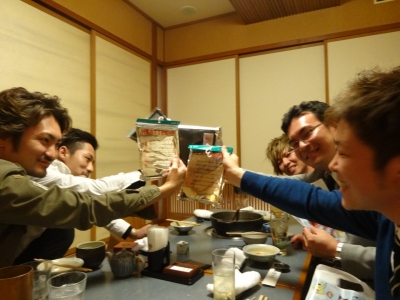 最後にみんなおそろいのヒートテックで乾杯